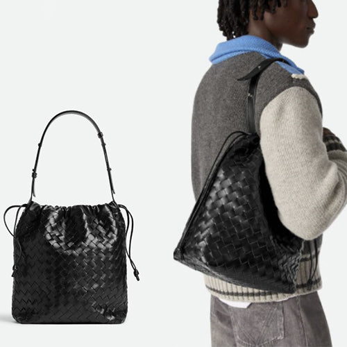 드로우스트링 숄더백 블랙