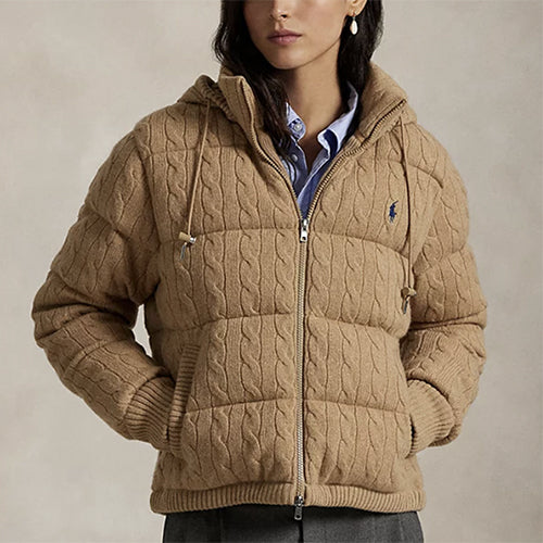 케이블 니트 울 캐시미어 퍼퍼 재킷