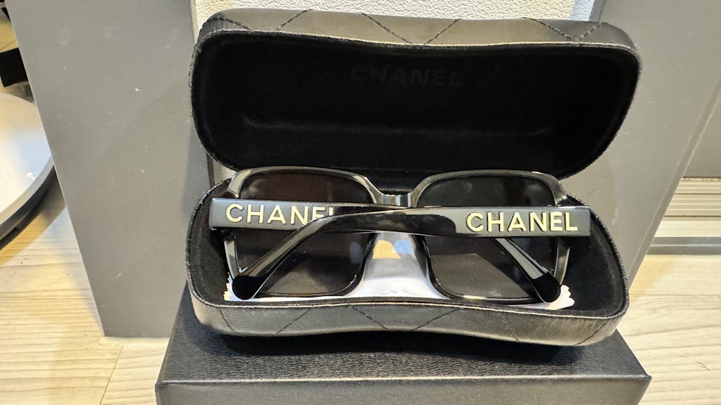 샤넬 레터링 오버핏 선글라스 블랙&골드