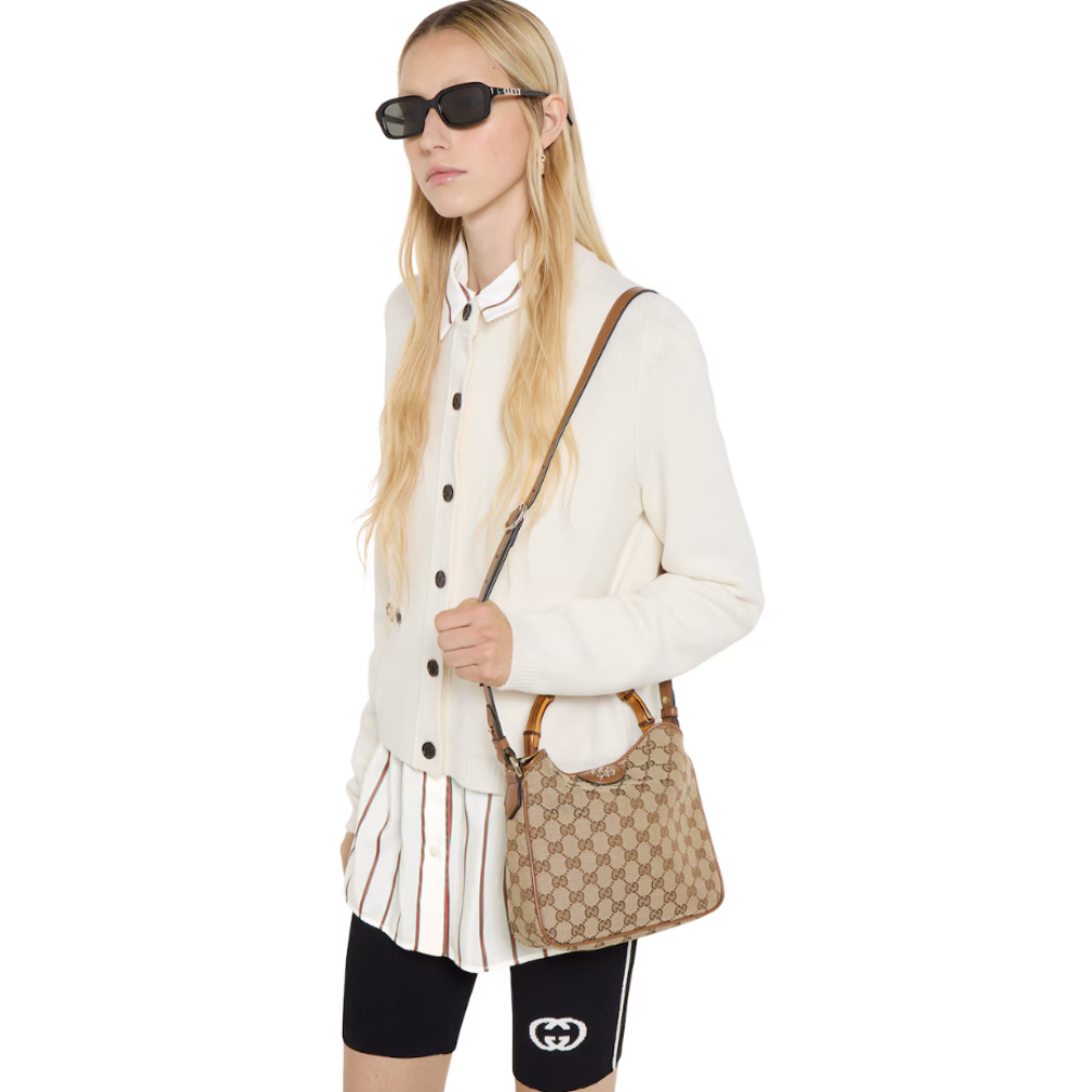 구찌 다이애나 GG 캔버스 백은 구찌 하우스의 시그니처 요소인 대나무 손잡이가 특징입니다. 크로스백 또는 숄더백으로 착용 가능하며, 구찌를 상징하는 시대를 초월하는 컬러로 선보입니다
