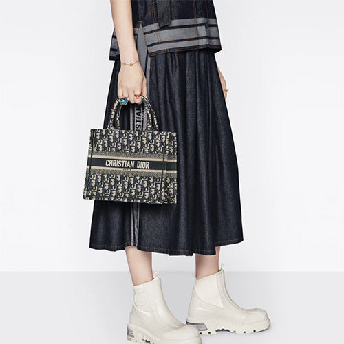 디올 북 토트백 스몰 블루 디올 오블리크 자수