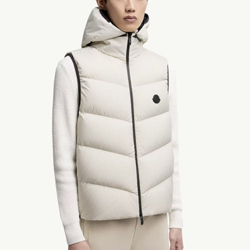 다이애그널 퀼티드 후드 패딩 조끼