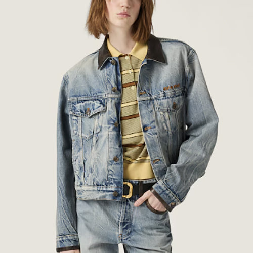 미우미우 데님 앤 가죽 블루종 자켓