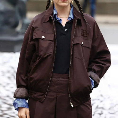 미우 미우 워시드 개버딘 블루종 자켓 브라운