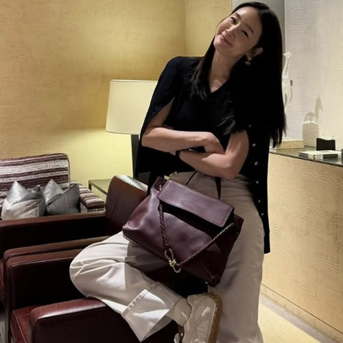 양방향 플랩을 갖춘 실키한 탑 핸들 백,