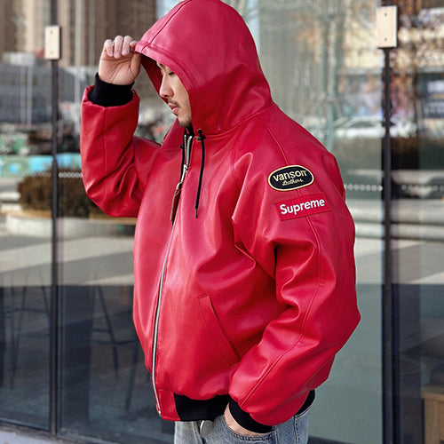 슈프림 x 밴슨 레더 후드 워크 자켓 레드