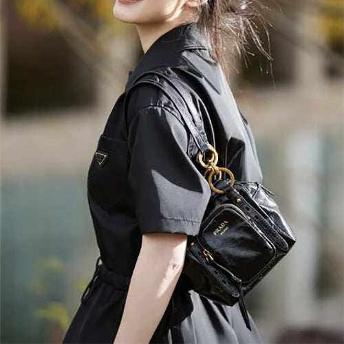 프라다 댕글 가죽 탑 핸들 미니백 블랙
