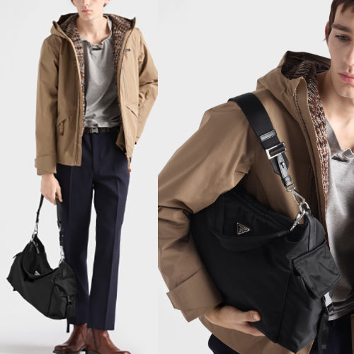 프라다 익스플로어 리사이클 나일론 가죽 숄더 호보백 블랙