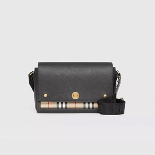 버버리 레더 빈티지 체크 노트 크로스바디 백 블랙