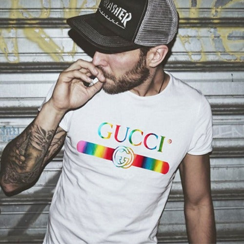 (국내배송) 구찌 메탈릭 레인보우 반팔티셔츠 - 당일출고!! 남여공용!!! 2Color