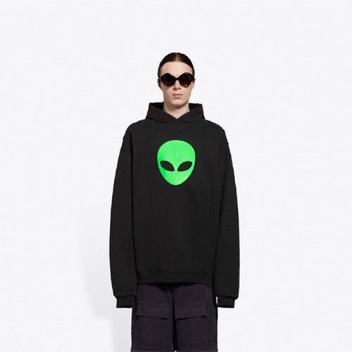 (국내배송) 21 S/S 발렌시아가 에일리언 외계인 오버핏 코튼 후드티 블랙