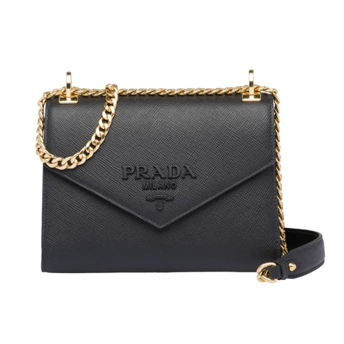 프라다 모노크롬 사피아노 레더 숄더백 블랙