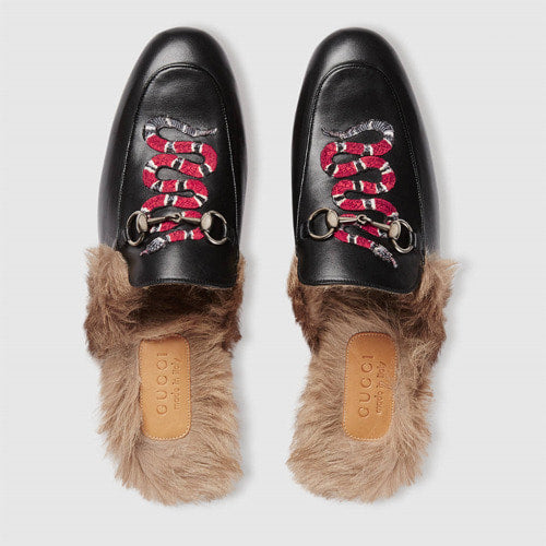 구찌 프린스타운 스네이크 퍼 가죽 블로퍼