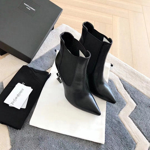 세인트로랑 오피움 로고 힐 앵글부츠 무광