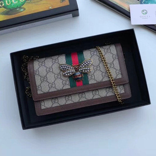 구찌 꿀벌 장식 중지갑 브라운