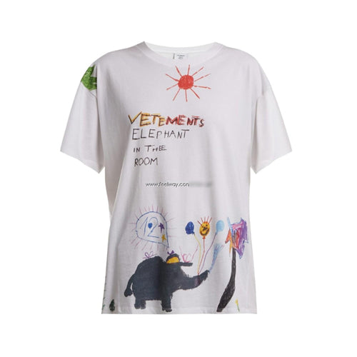 베트멍 화이트 그래피티 엘리펀트 프린트 반팔티셔츠