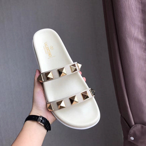 발렌티노 락스터드 슬라이드 화이트