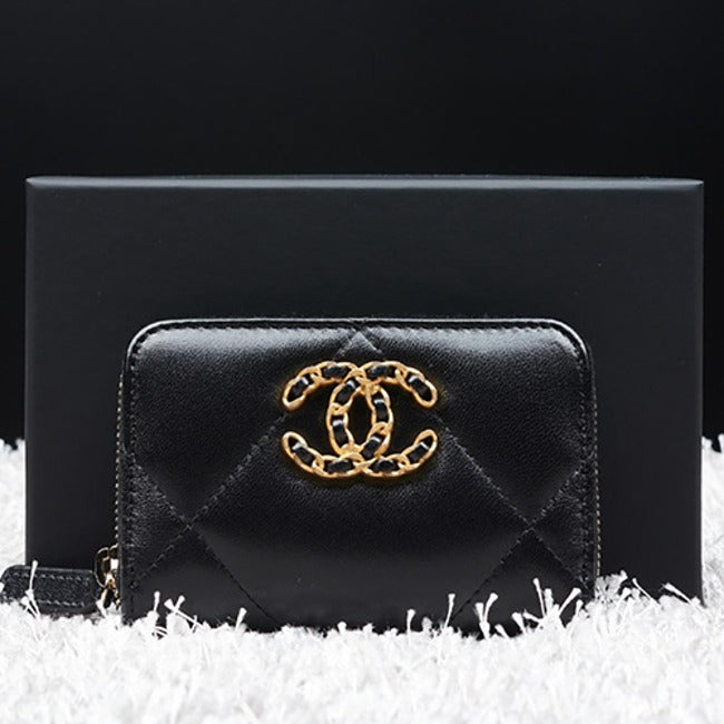 샤넬 19 나인틴 지퍼 카드지갑 블랙 금장