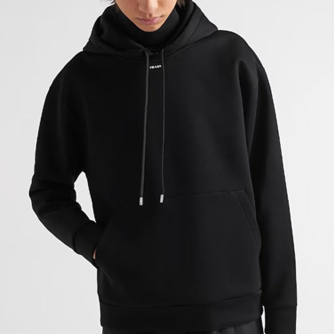 (국내배송) 프라다 테크니컬 코튼 넥로고 후드 블랙(당일출고서울만!!)