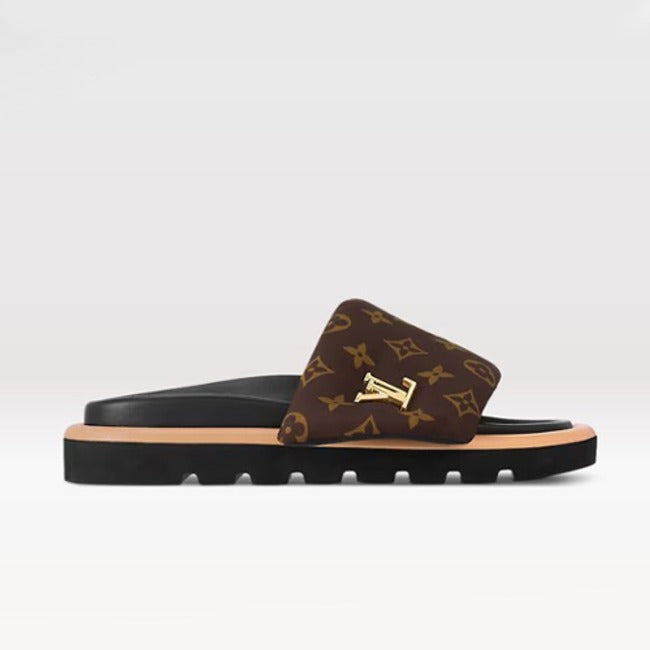 루이비통 풀 필로우 플랫 컴포트 뮬 브라운