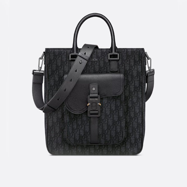 디올 오블리크 자카드 새들 토트백 블랙